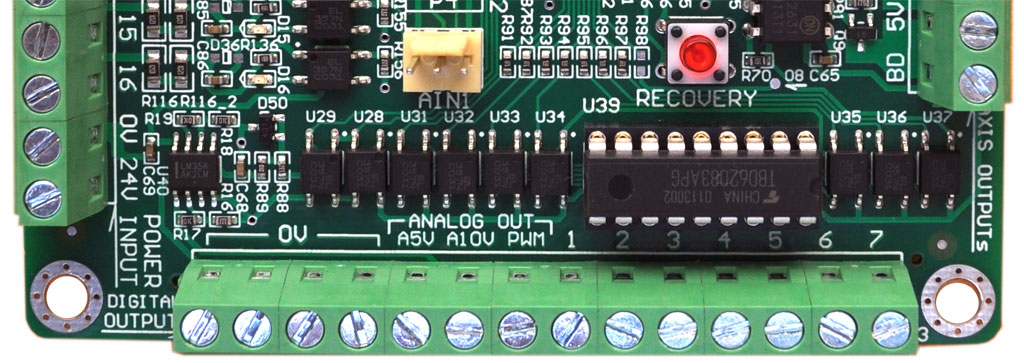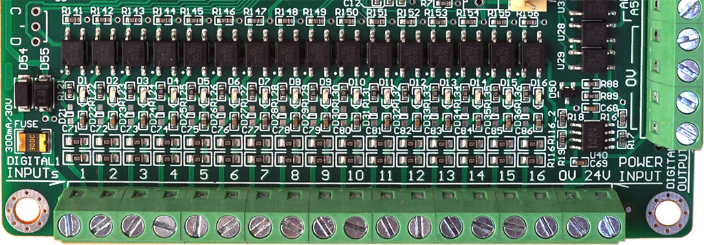 10x 10MHz high-speed optocouplers, 24 general optocouplers for isolating all of the input/output signals.